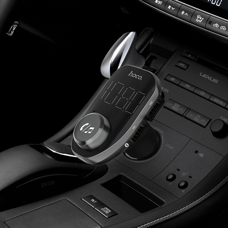 HOCO E45 автомобильное зарядное устройство двойной c USB выходами и беспроводным FM трансмиттером.