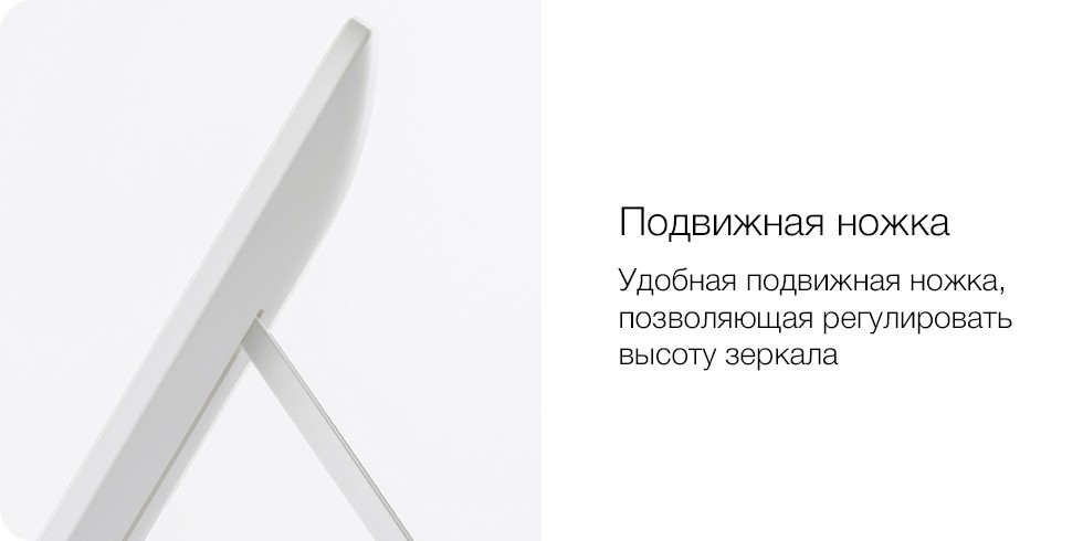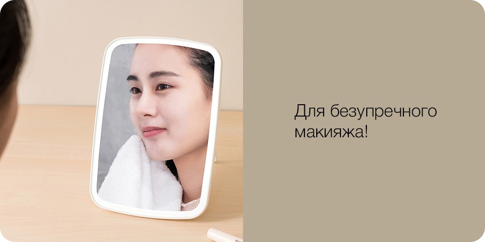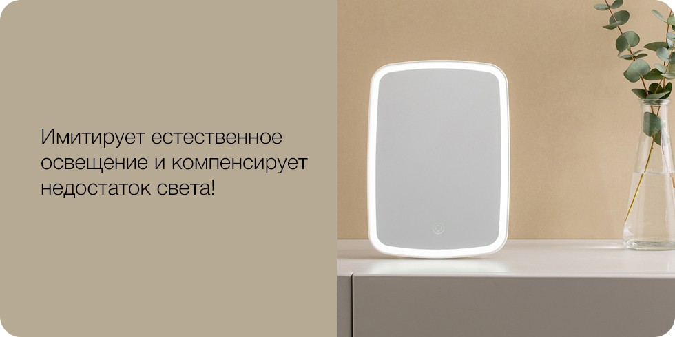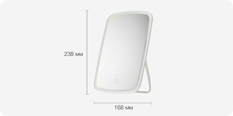Зеркало для макияжа от компании Xiaomi с многоуровневой LED подсветкой и встроенным аккумулятором обладает специальным серебряным покрытием, чтобы не искажать отражения. Настольное зеркало для макияжа оснащено светодиодами, которые способны выдавать максимальный уровень освещённости 525 Lux. Мощность светодиодной подсветки вокруг зеркала можно регулировать с помощью сенсорной кнопки. Встроенная батарея 1200 мАч позволяет использовать зеркало в любом месте и без проводов. Зеркало можно установить под углом 30°, 60° или 90° в зависимости от высоты поверхности, на которой оно будет находиться. Таким образом, Вы можете подобрать наиболее удобное положение для вас.