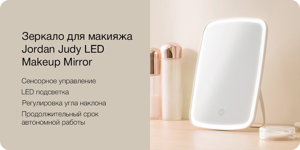 Вы все еще наносите макияж в условиях плохого освещения? Как неприятно обнаружить, что макияж нанесен неидеально. Зеркало для макияжа Jordan Judy LED Makeup Mirror отличается качественным и чистым отражением. Подсветка, имитирующая дневной свет, и возможность регулировки угла наклона делают проведение косметических процедур и нанесение макияжа очень удобным, а также позволяют превратить зеркало в стильную прикроватную лампу или селфи фонарь.