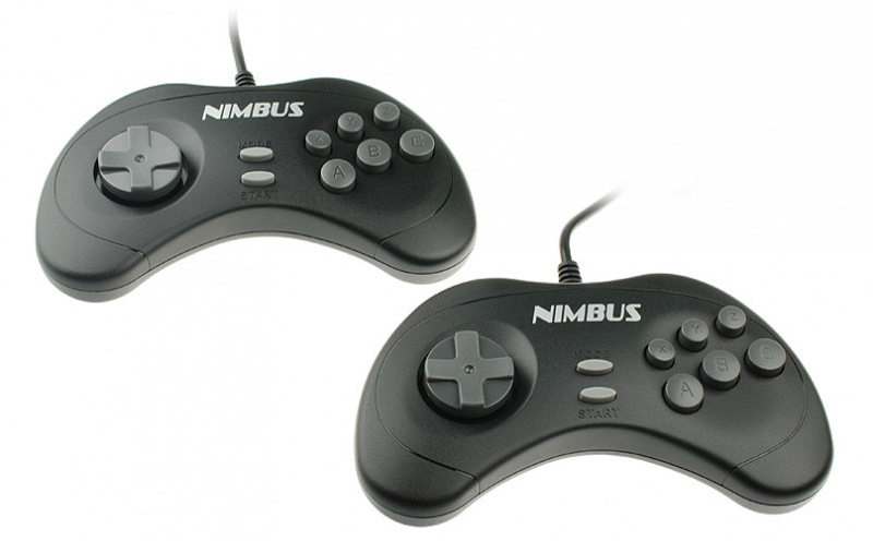 Специально для использования с NIMBUS SMART разработан новый игровой джойстик c полным функционалом. Цвет джойстика традиционно черный, кнопки действий и крестик серые, с плавным ходом, усиленная конструкция, кнопки START и MODE выполнены из прорезиненного материала. В качестве материала для корпуса использован ударопрочный пластик ABS.
