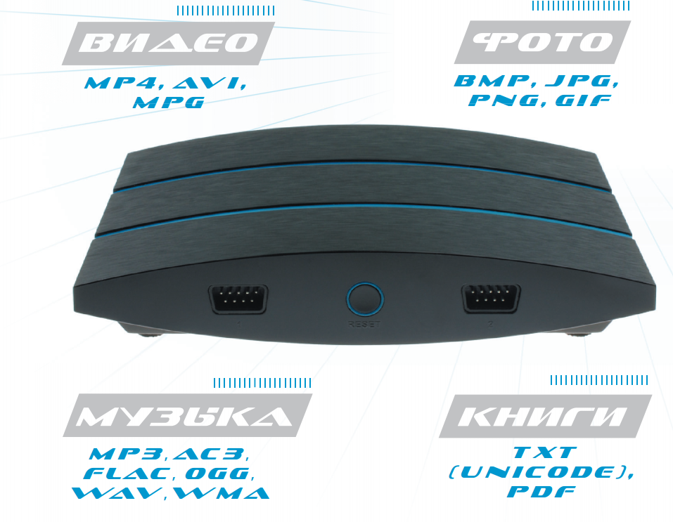 Мультимедиа платформа игровой видеоприставки позволяет просматривать изображения, видеоролики, электронные книги, а также прослушивать музыку популярных форматов.