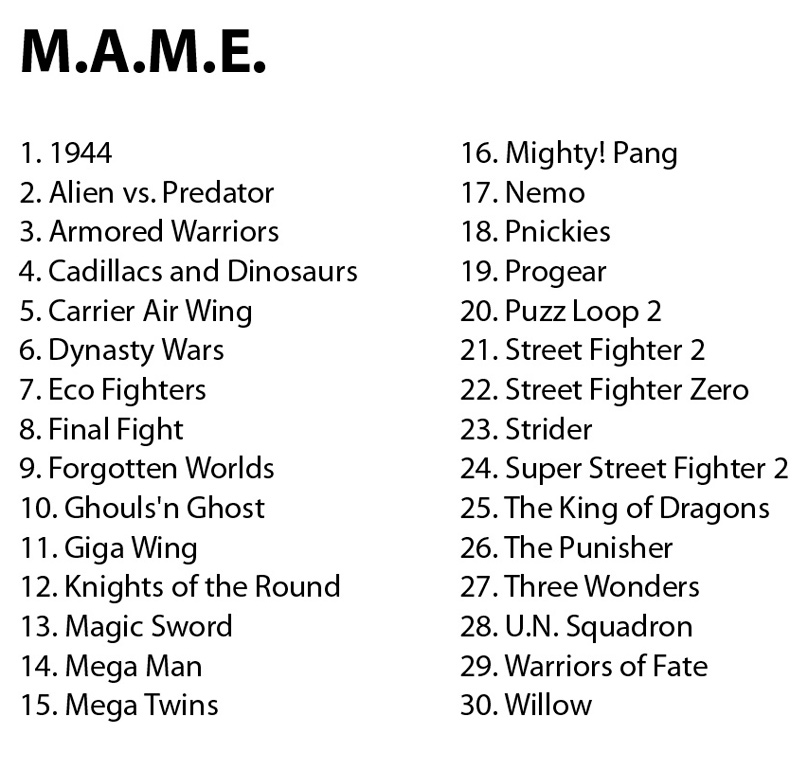 Эмулятор MAME (Multiple Arcade Machine Emulator) был разработан для воссоздания электронного оборудования аркадных автоматов в виде программного обеспечения, с целью сохранения истории игр и предотвращения исчезновения старых игр. В память игровой приставки встроены 30 игр формата MAME.