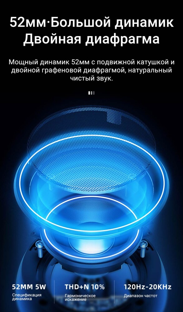 - Спикер: 52 мм. 4Ω5W + двойная диафрагма.