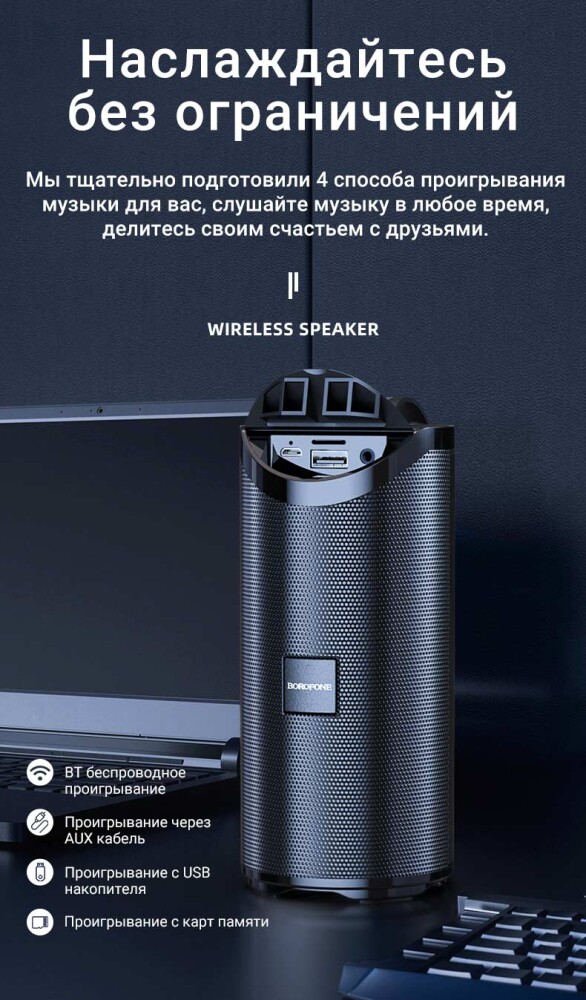 - Назначение: работа в режимах воспроизведения музыки и разговора, FM радио, режимы воспроизведения с TF карт, USB, AUX.