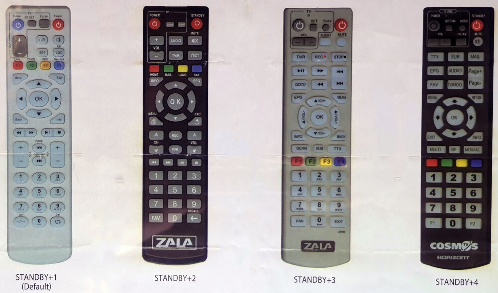 Универсальный пульт ДУ для ZALA и Cosmos TV. Пульт работает точно так же, как и оригинальный пульт ZALA/Cosmos TV. Не требуется никаких настроек. Просто вставьте батарейки, и Ваш пульт готов к работе.