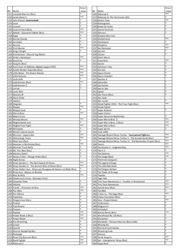 Классическая форма корпуса Famicom с узнаваемыми элементами – отсеками для хранения джойстиков, рычагом для лёгкого извлечения игровых картриджей и крышкой, которая предохраняет отсек картриджей от попадания пыли. Быстрый выход в раздел выбора встроенных игр с помощью кнопки Reset. Моментальная загрузка. Совместимость с игровыми картриджами для Dendy и NES. Питание от стандартного адаптера 5V с разъемом microUSB. 300 встроенных полноценных игр самых разнообразных жанров. Никаких повторов или вариантов "9999 в одном". Турбо аналоги кнопок A и B, которые обеспечивают многократное нажатие на кнопку. В некоторых играх это крайне удобно и позволяет сохранить ресурс самих кнопок на джойстике.