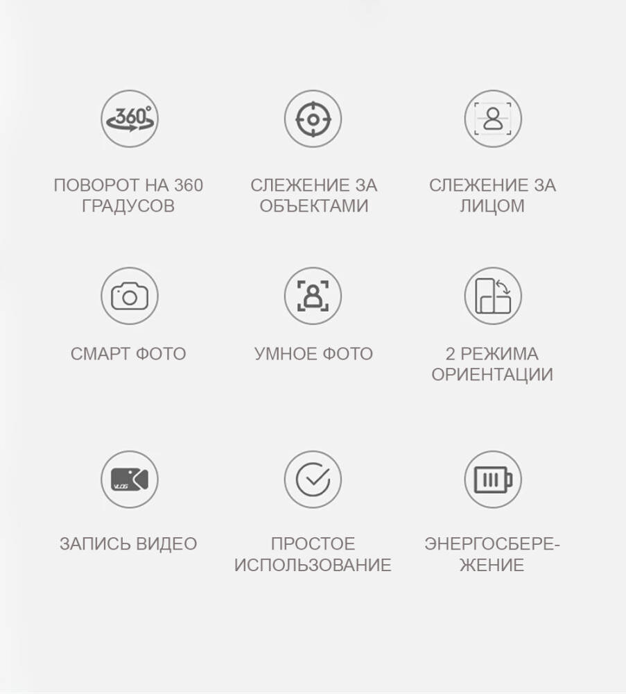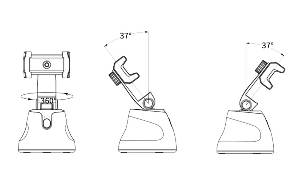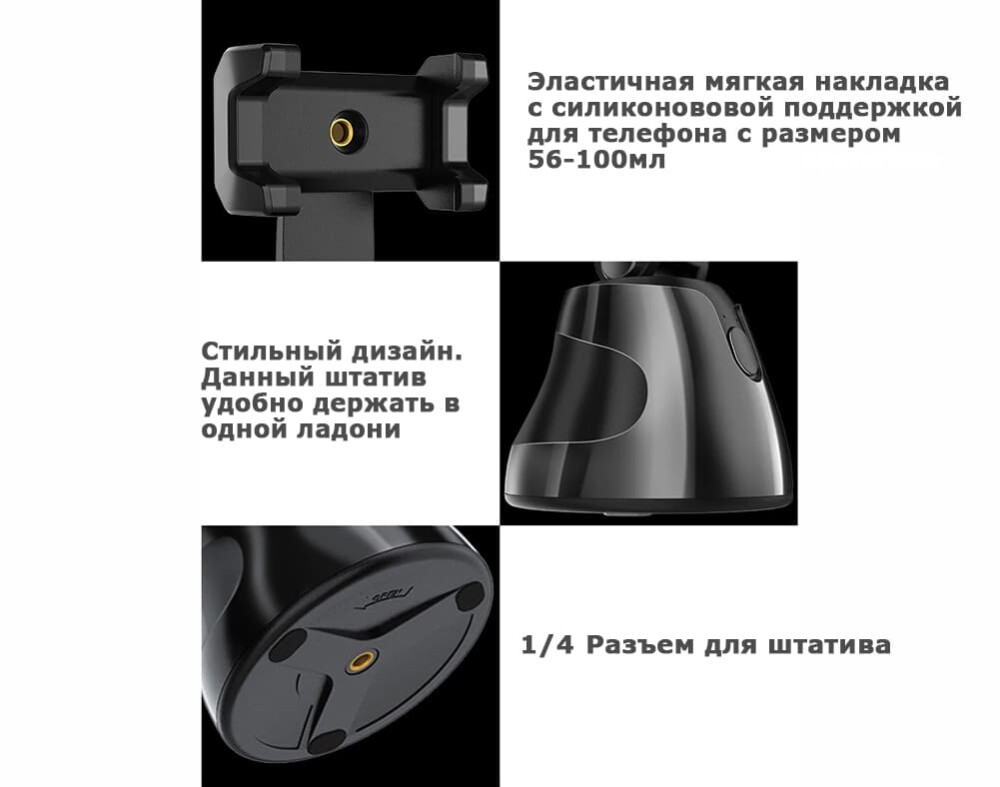 Держатель для телефона сможет распознать лицо, вращается на 360 градусов и автоматически распознает как человека, так и питомца. Когда вы совершаете движение, умный держатель для съемки будет за вашим движением, установит позицию при остановке и сделает снимки автоматически в фиксированное время 3 секунды.