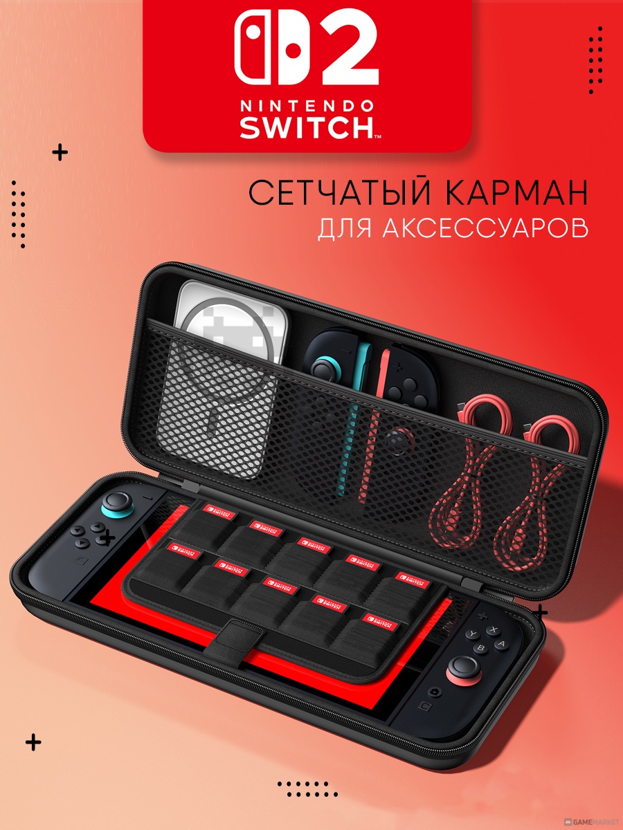 - Идеальная посадка: специально разработанные отделения для Nintendo Switch 2.