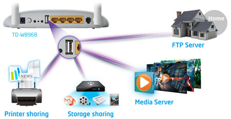 Благодаря многофункциональному порту USB 2.0 пользователи смогут создать совместный доступ к принтерам, файлам, 3G-модему и медиа по локальной сети для нескольких компьютеров дома или за его пределами с помощью FTP-сервера - ваши файлы будут доступны для вас в любой момент.