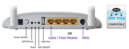 Уникальная возможность TD-W8968: поддержка подключения по ADSL или WAN (EWAN) с помощью кабеля Ethernet. Преимущество заключается в том, что пользователь может выбирать тип подключения: ADSL или кабельное подключение/подключение через кабельный модем по изменяемому LAN/WAN порту. Это позволяет при необходимости без труда переключиться с одного типа подключения на другое.