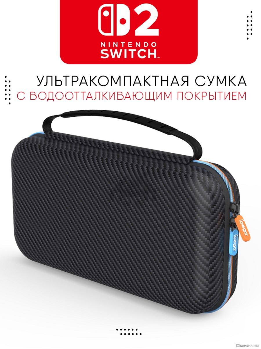 Эта стильная и практичная сумка надежно защитит вашу Nintendo Switch 2 от повреждений благодаря водоотталкивающей ткани. Внутри сумки предусмотрено два отдельных отсека: один — основное отделение для самой консоли, а второй — сетчатый карман для мелких аксессуаров, обеспечивающий быстрый доступ к ним. Кроме того, есть специальное отделение для хранения игровых картриджей, что позволит держать их в порядке и легко находить нужные. Сумка идеально подходит для тех, кто часто берёт свою Nintendo Switch 2 с собой, ценя при этом удобство и функциональность. Сумка обеспечивает безопасную и организованную транспортировку консоли и её принадлежностей.