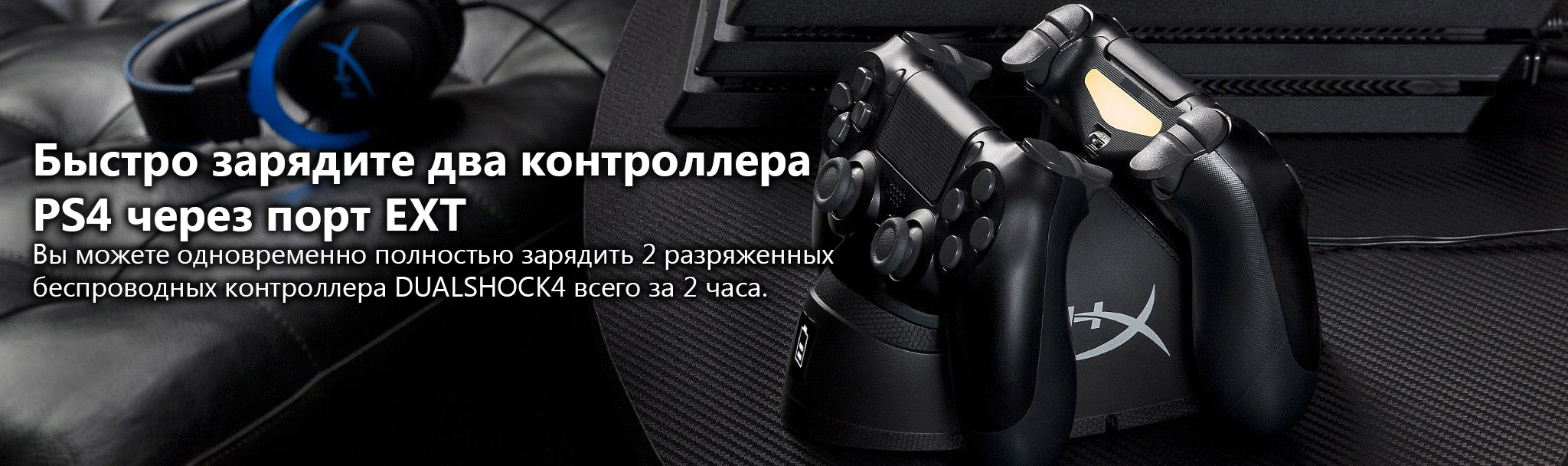 - Быстрая зарядка двух контроллеров PS4 через порт EXT
